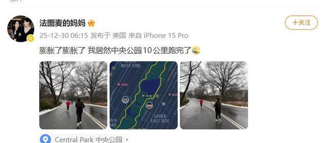 前年12月30日,哈文在应付平台发文赞好意思,说我方在好意思国中央公园跑了10公里,直呼“扩张”。