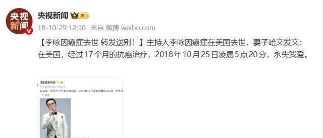 直到18年10月传出讣告,公共才知说念了李咏赴好意思的真相,本来他是要去好意思国调治癌症。